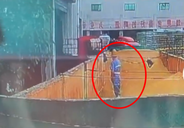 칭다오 직원으로 보이는 한 남성이 어렵게 맥아가 저장 된 곳의 담을 넘어 들어갑니다.